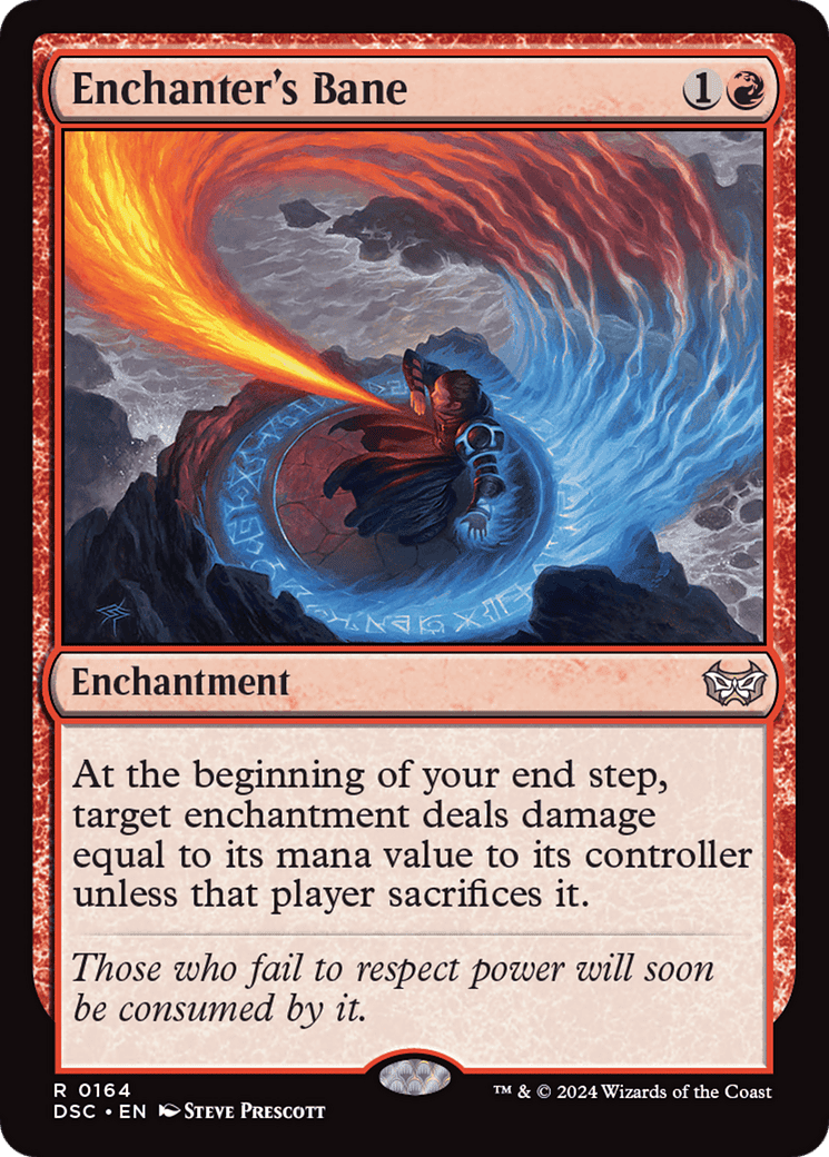 At the beginning of your end step, target enchantment deals damage equal to its mana value to its controller unless that player sacrifices it.