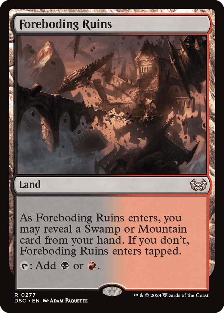 As this land enters, you may reveal a Swamp or Mountain card from your hand. If you don’t, this land enters tapped. {T}: Add {B} or {R}.