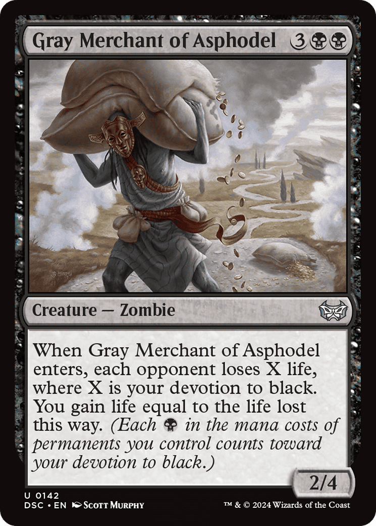 When this creature enters, each opponent loses X life, where X is your devotion to black. You gain life equal to the life lost this way. (Each {B} in the mana costs of permanents you control counts toward your devotion to black.)