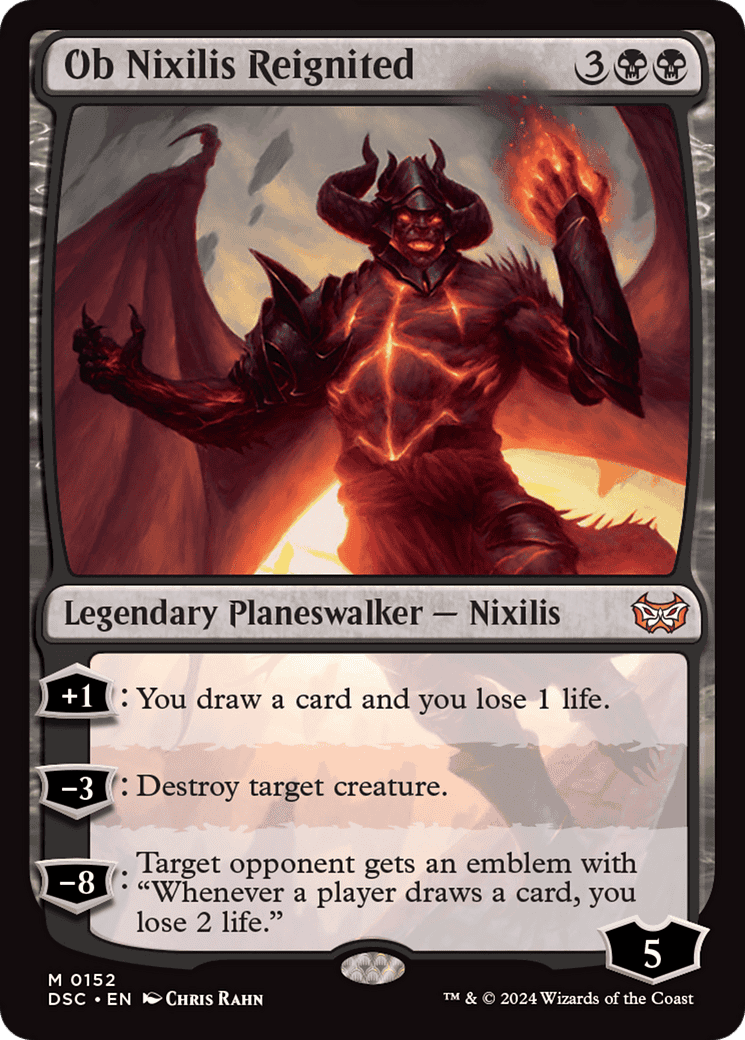 −8: Target opponent gets an emblem with “Whenever a player draws a card, you lose 2 life.”