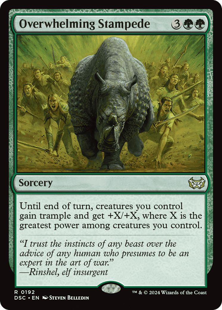 Until end of turn, creatures you control gain trample and get +X/+X, where X is the greatest power among creatures you control.