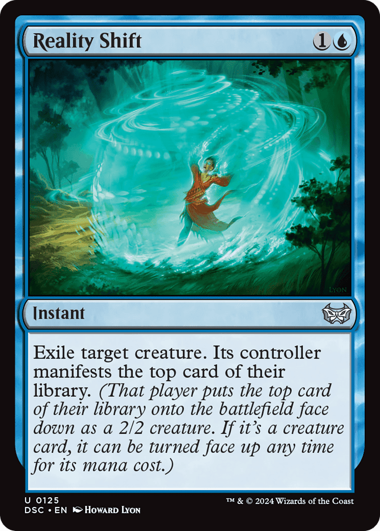 Exile target creature. Its controller manifests the top card of their library. (That player puts the top card of their library onto the battlefield face down as a 2/2 creature. If it’s a creature card, it can be turned face up any time for its mana cost.)