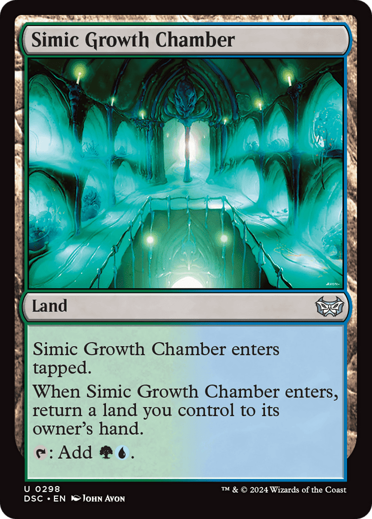 This land enters tapped. When this land enters, return a land you control to its owner’s hand. {T}: Add {G}{U}.