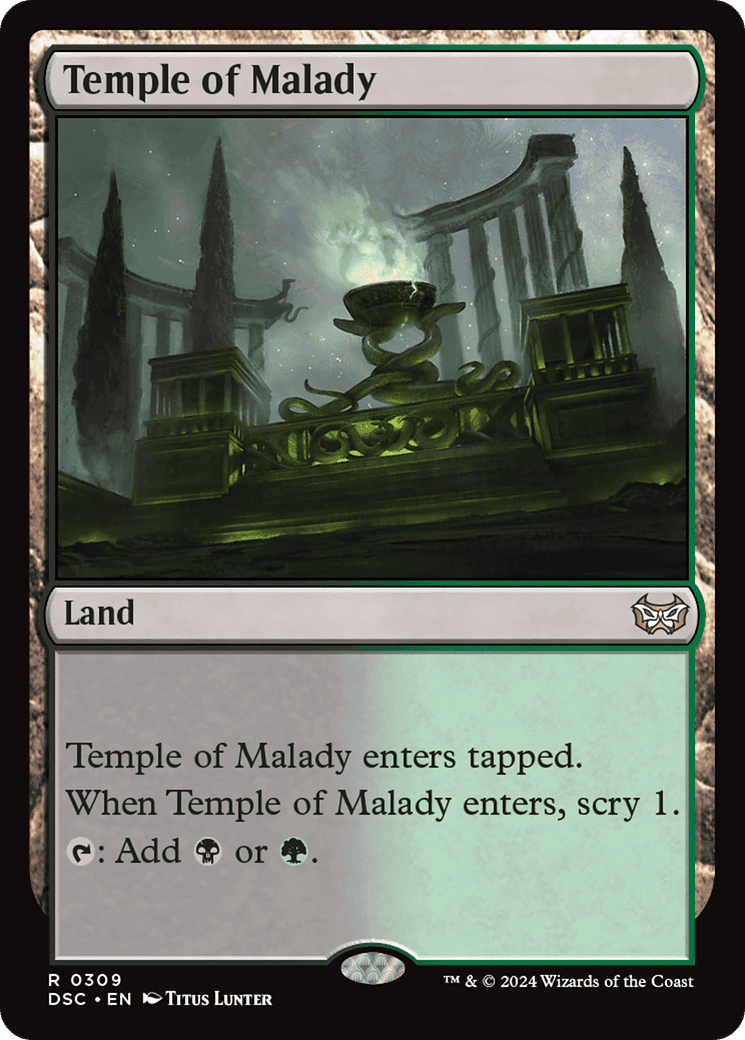 This land enters tapped. When this land enters, scry 1. (Look at the top card of your library. You may put that card on the bottom.) {T}: Add {B} or {G}.