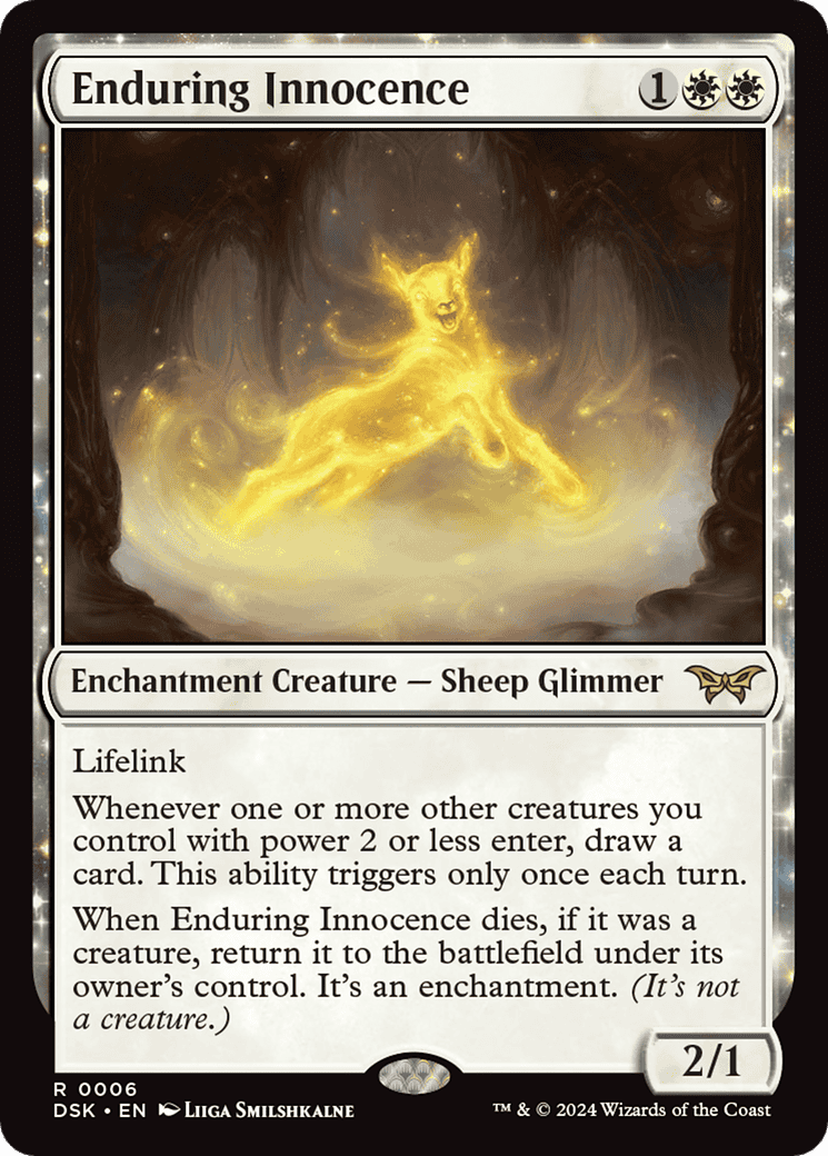 When Enduring Innocence dies, if it was a creature, return it to the battlefield under its owner’s control. It’s