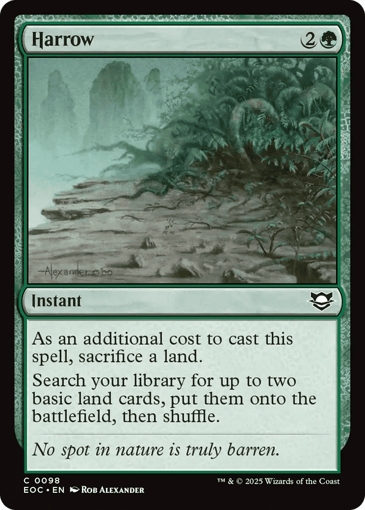 Search your library for up to two basic land cards, put them onto the battlefield, then shuffle.