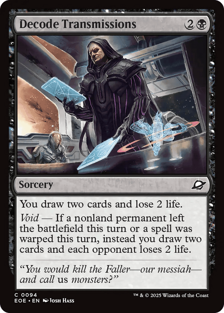 Void – If a nonland permanent left the battlefield this turn or a spell was warped this turn, instead you draw two cards and each opponent loses 2 life.