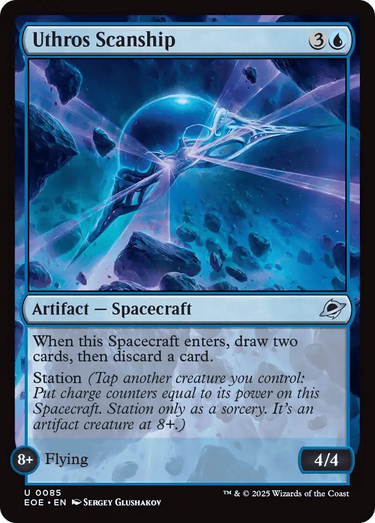Station (Tap another creature you control: Put charge counters equal to its power on this Spacecraft. Station only as a sorcery. It’s an artifact creature at 8+.)