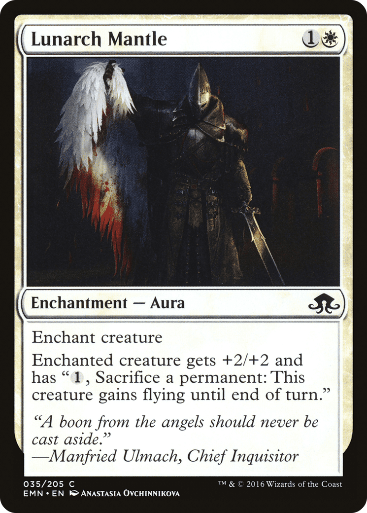 Enchanted creature gets +2/+2 and has “{1}, Sacrifice a permanent: This creature gains flying until end of turn.”