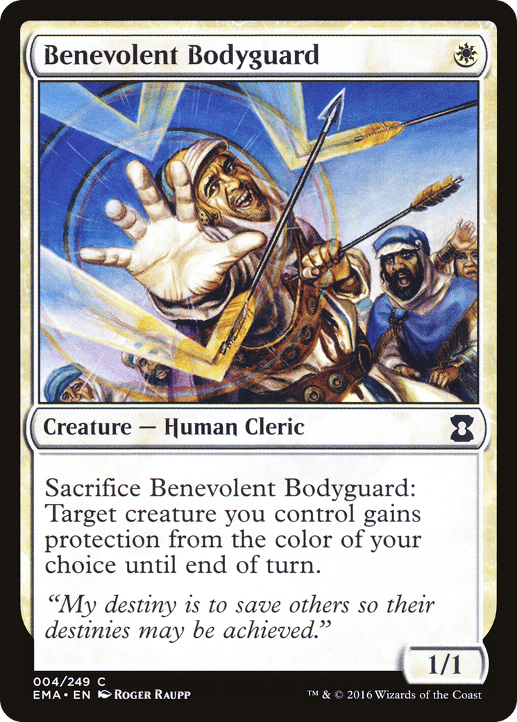 Sacrifice this creature: Target creature you control gains protection from the color of your choice until end of turn.