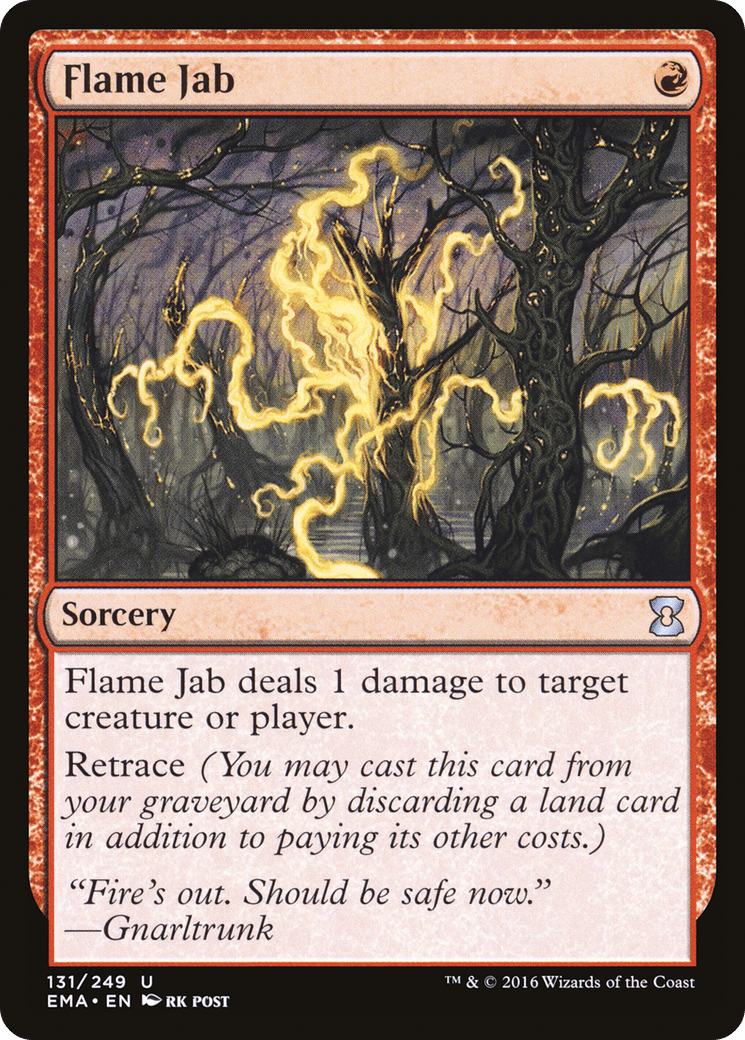 Flame Jab deals 1 damage to any target.
