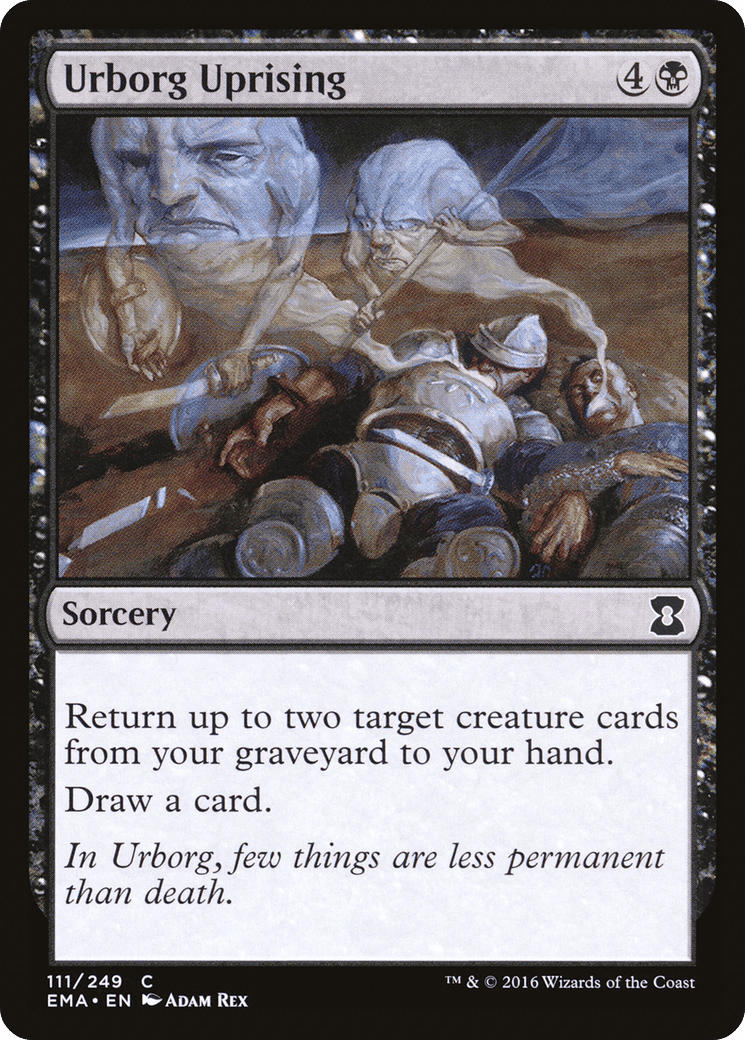 Return up to two target creature cards from your graveyard to your hand. Draw a card.