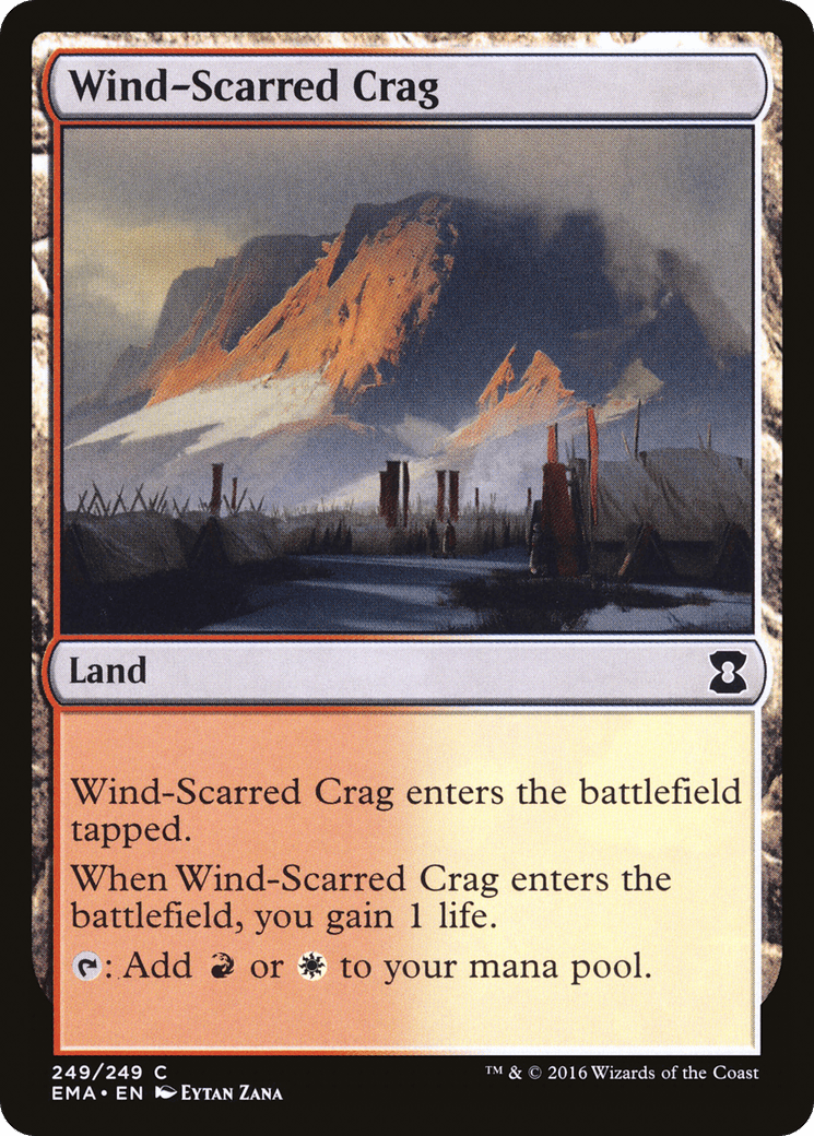 This land enters tapped. When this land enters, you gain 1 life. {T}: Add {R} or {W}.