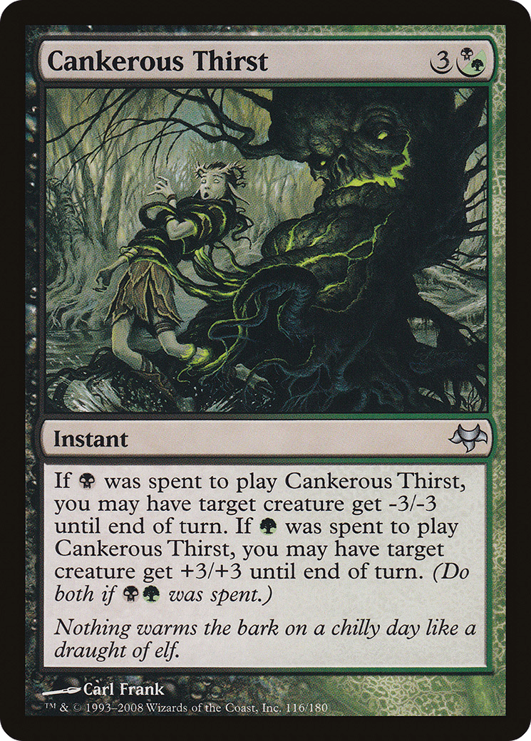 If {B} was spent to cast this spell, you may have target creature get -3/-3 until end of turn. If {G} was spent to cast this spell, you may have target creature get +3/+3 until end of turn. (Do both if {B}{G} was spent.)