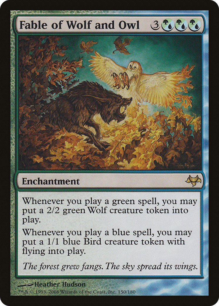 Whenever you cast a green spell, you may create a 2/2 green Wolf creature token.
