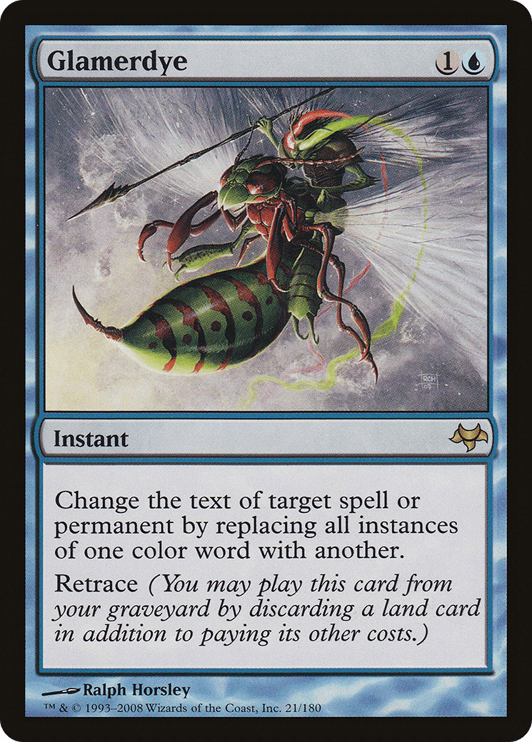 Change the text of target spell or permanent by replacing all instances of one color word with another.