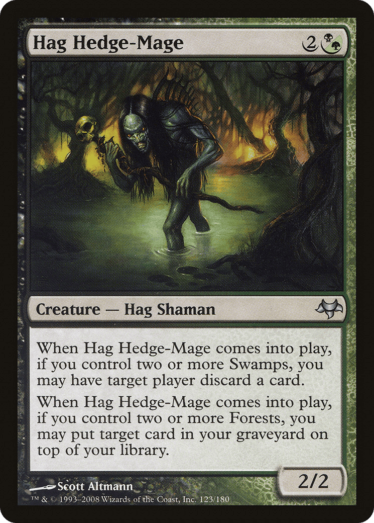 When this creature enters, if you control two or more Swamps, you may have target player discard a card.