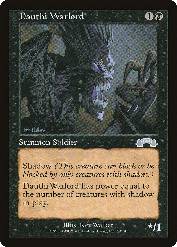 Dauthi Warlord’s power is equal to the number of creatures on the battlefield with shadow.