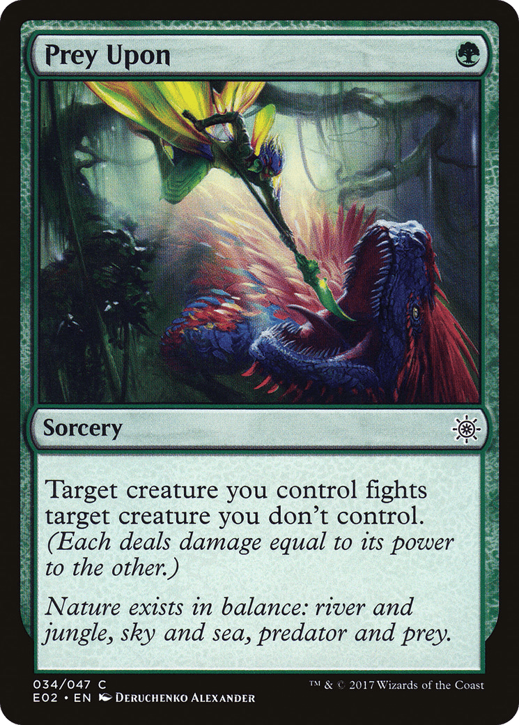 Target creature you control fights target creature you don’t control. (Each deals damage equal to its power to the other.)