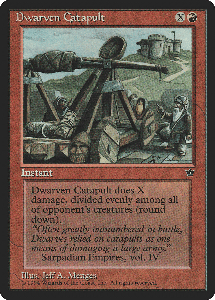 “Often greatly outnumbered in battle, Dwarves relied on catapults as one means of damaging a large army.”