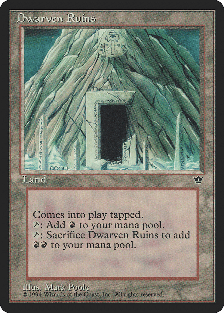 This land enters tapped. {T}: Add {R}. {T}, Sacrifice this land: Add {R}{R}.