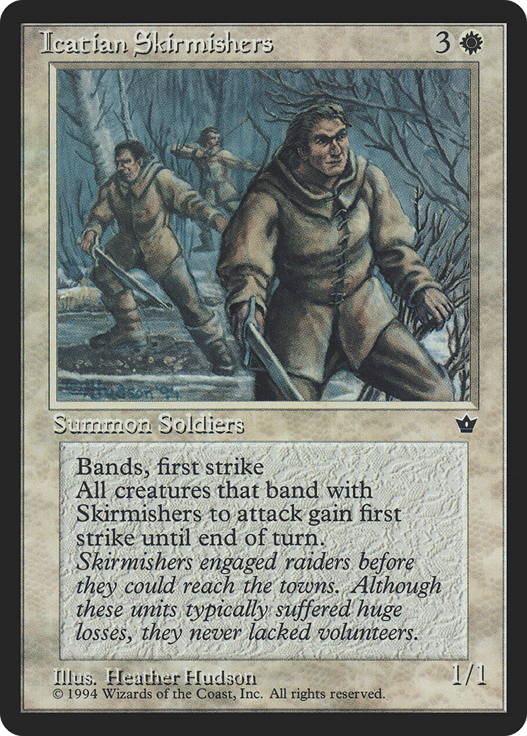First strike; banding (Any creatures with banding, and up to one without, can attack in a band. Bands are blocked as a group. If any creatures with banding you control are blocking or being blocked by a creature, you divide that creature’s combat damage,