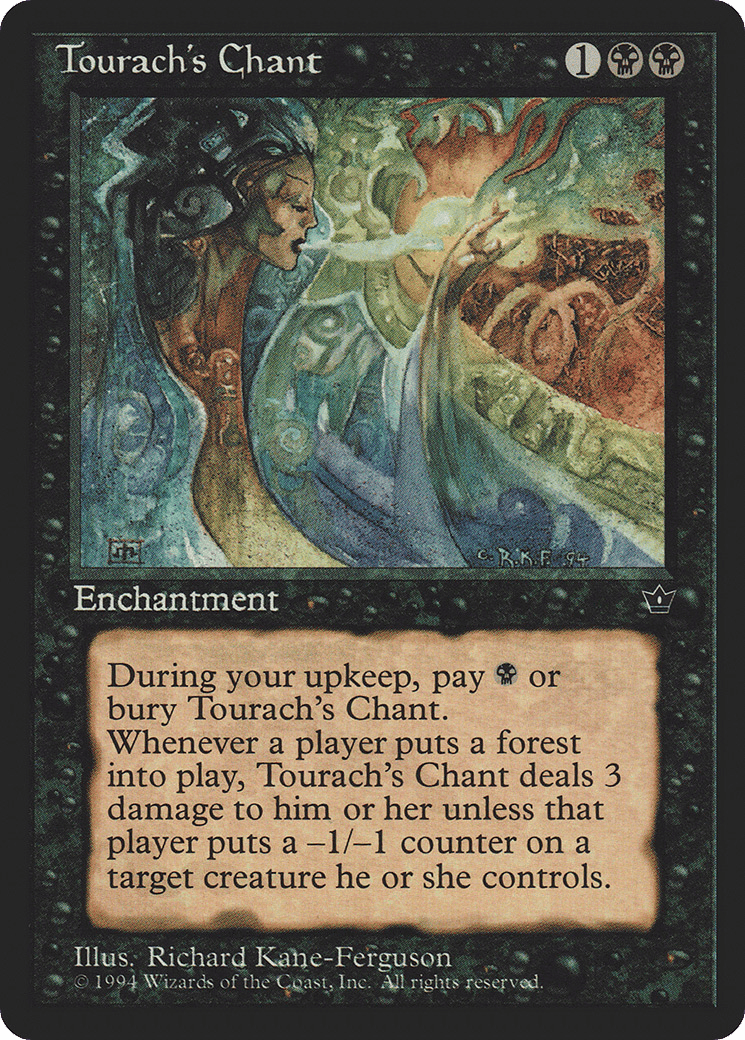 Whenever a player puts a Forest onto the battlefield, this enchantment deals 3 damage to that player unless they put a -1/-1 counter on a creature they control.