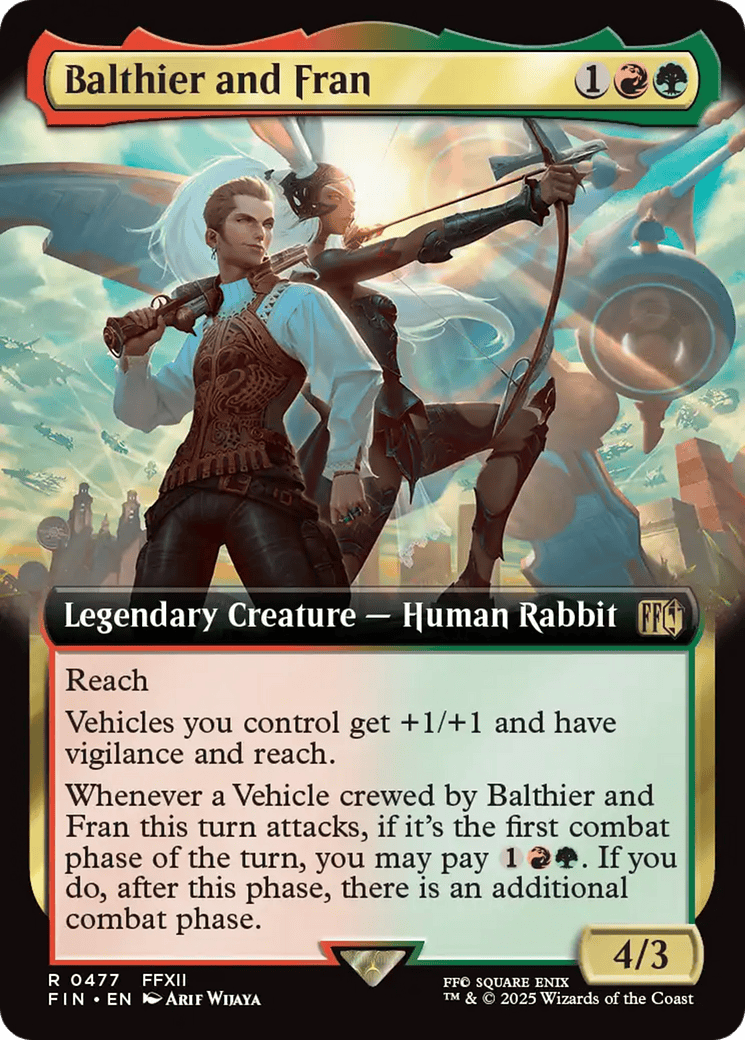 Whenever a Vehicle crewed by Balthier and Fran this turn attacks, if it’s the first combat phase of the turn, you may pay {1}{R}{G}. If you do, after this phase, there is an additional com