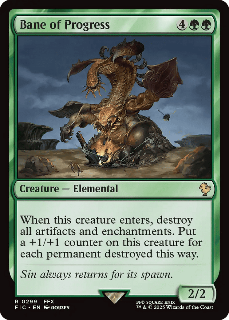 When this creature enters, destroy all artifacts and enchantments. Put a +1/+1 counter on this creature for each permanent destroyed this way.