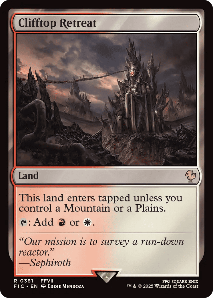 This land enters tapped unless you control a Mountain or a Plains. {T}: Add {R} or {W}.