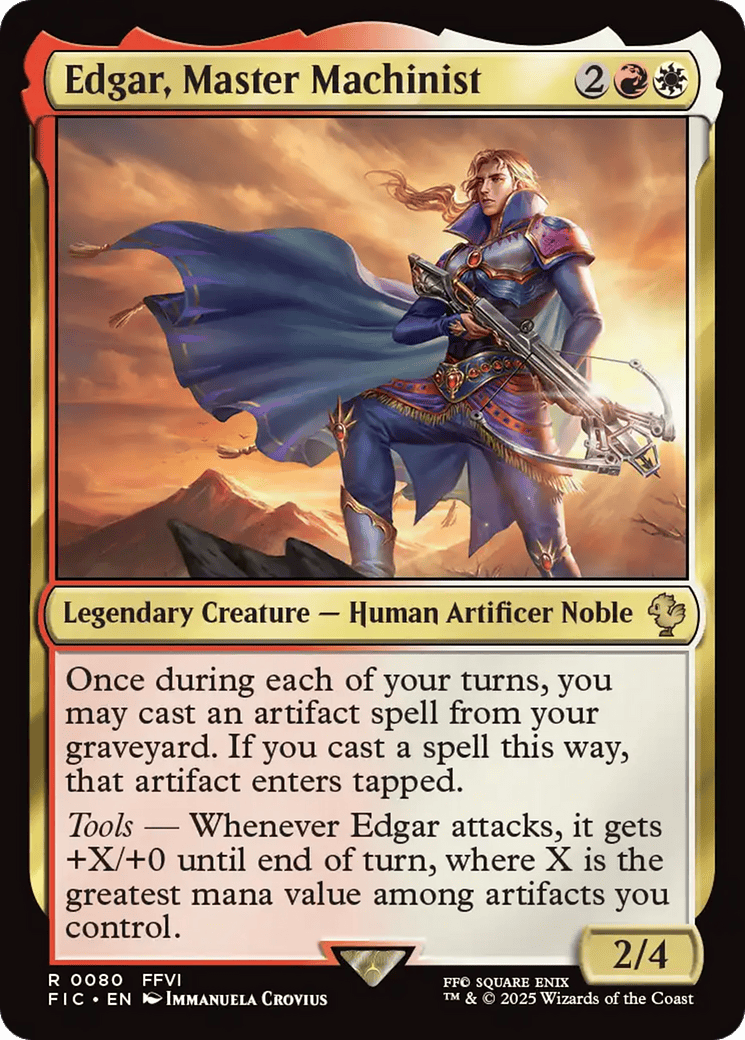 Tools – Whenever Edgar attacks, it gets +X/+0 until end of turn, where X is the greatest mana value among artifa