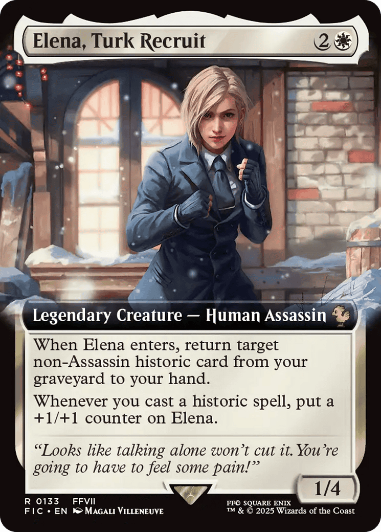 When Elena enters, return target non-Assassin historic card from your graveyard to your hand. (Artifacts, legendaries, and Sagas are historic.)