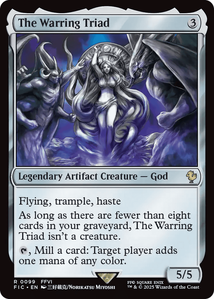 As long as there are fewer than eight cards in your graveyard, The Warring Triad isn’t a creature.