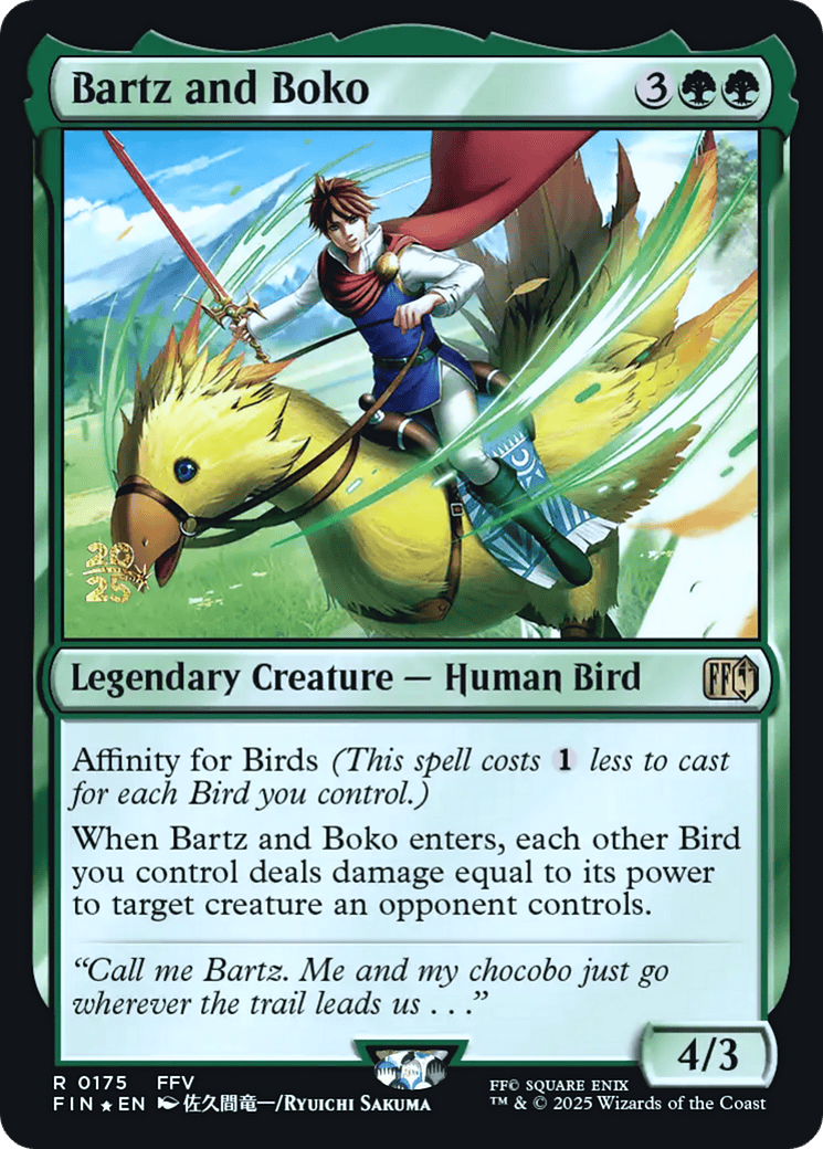 When Bartz and Boko enters, each other Bird you control deals damage equal to its power to target creature an opponent controls.
