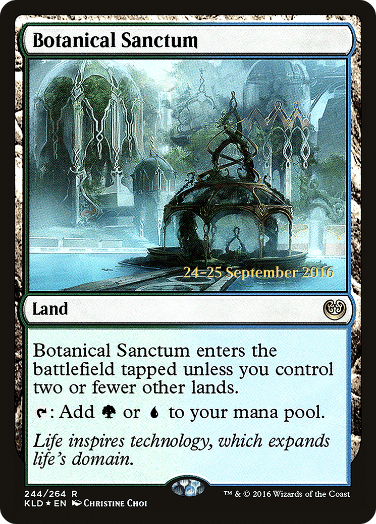 This land enters tapped unless you control two or fewer other lands. {T}: Add {G} or {U}.