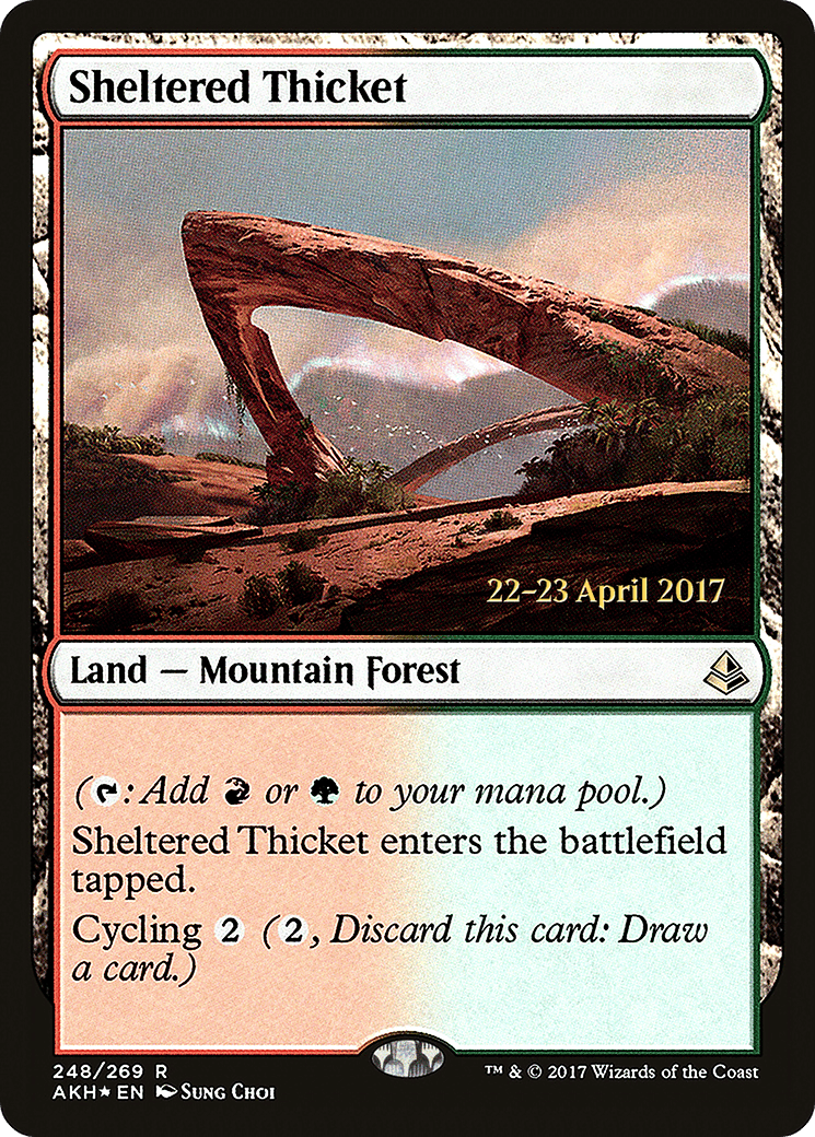 ({T}: Add {R} or {G}.) This land enters tapped. Cycling {2} ({2}, Discard this card: Draw a card.)