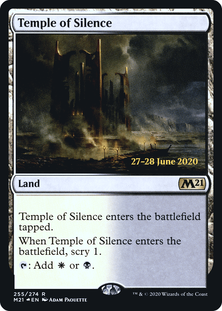 This land enters tapped. When this land enters, scry 1. (Look at the top card of your library. You may put that card on the bottom.) {T}: Add {W} or {B}.