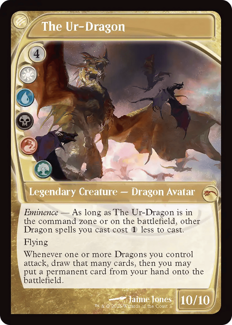Eminence – As long as The Ur-Dragon is in the command zone or on the battlefield, other Dragon spells you cast cost {1} less to cast.