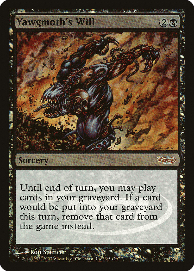 Until end of turn, you may play lands and cast spells from your graveyard. If a card would be put into your graveyard from anywhere this turn, exile that card instead.