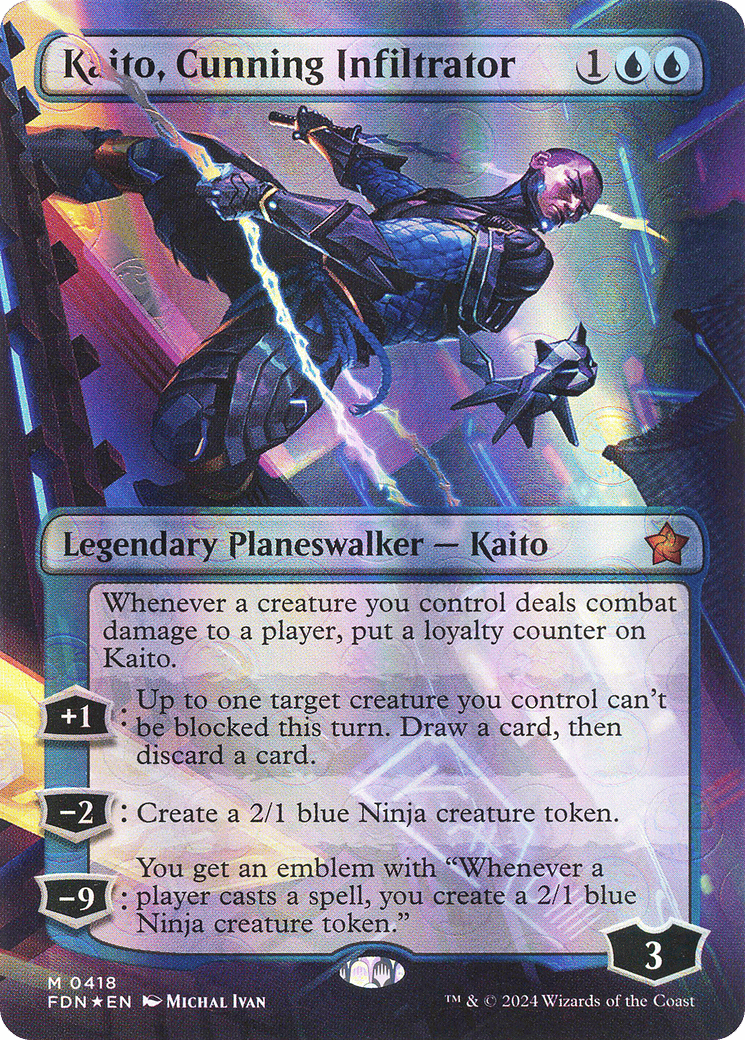 Kaito, Cunning Infiltrator (0418) (Borderless) (FDN) – Mana Foil