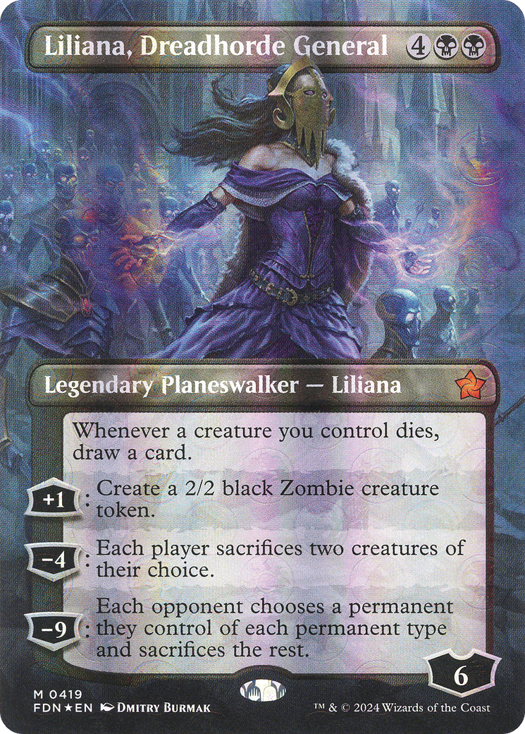 Liliana, Dreadhorde General (0419) (Borderless) (FDN) – Mana Foil