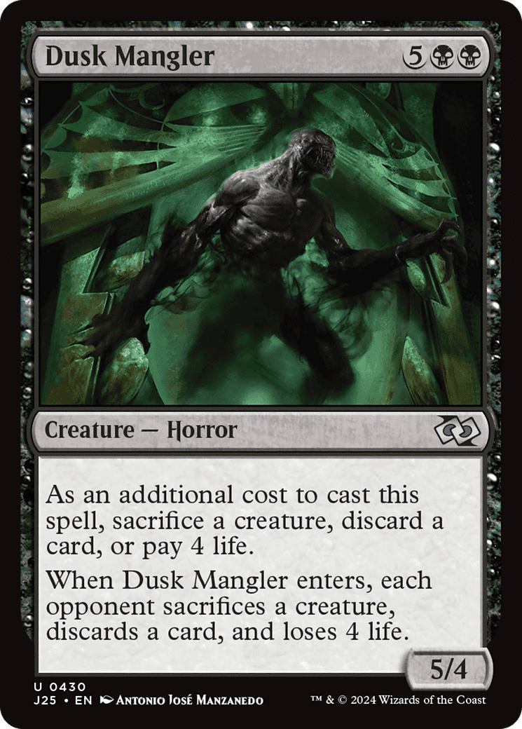 When this creature enters, each opponent sacrifices a creature of their choice, discards a card, and loses 4 life.