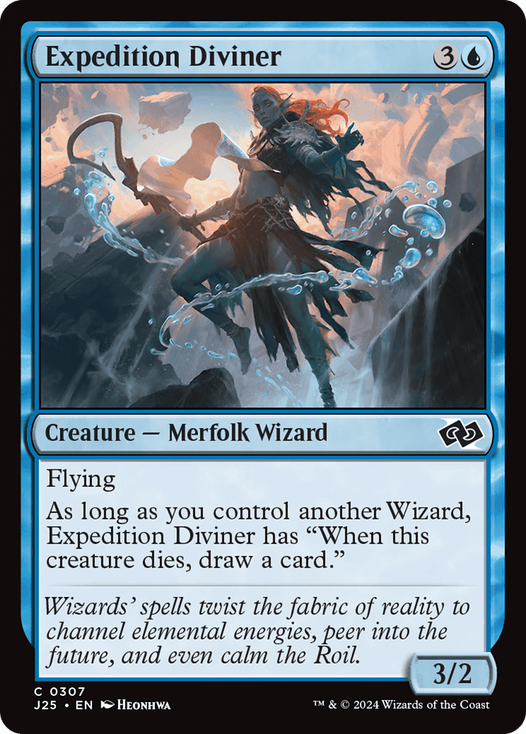 As long as you control another Wizard, this creature has “When this creature dies, draw a card.”