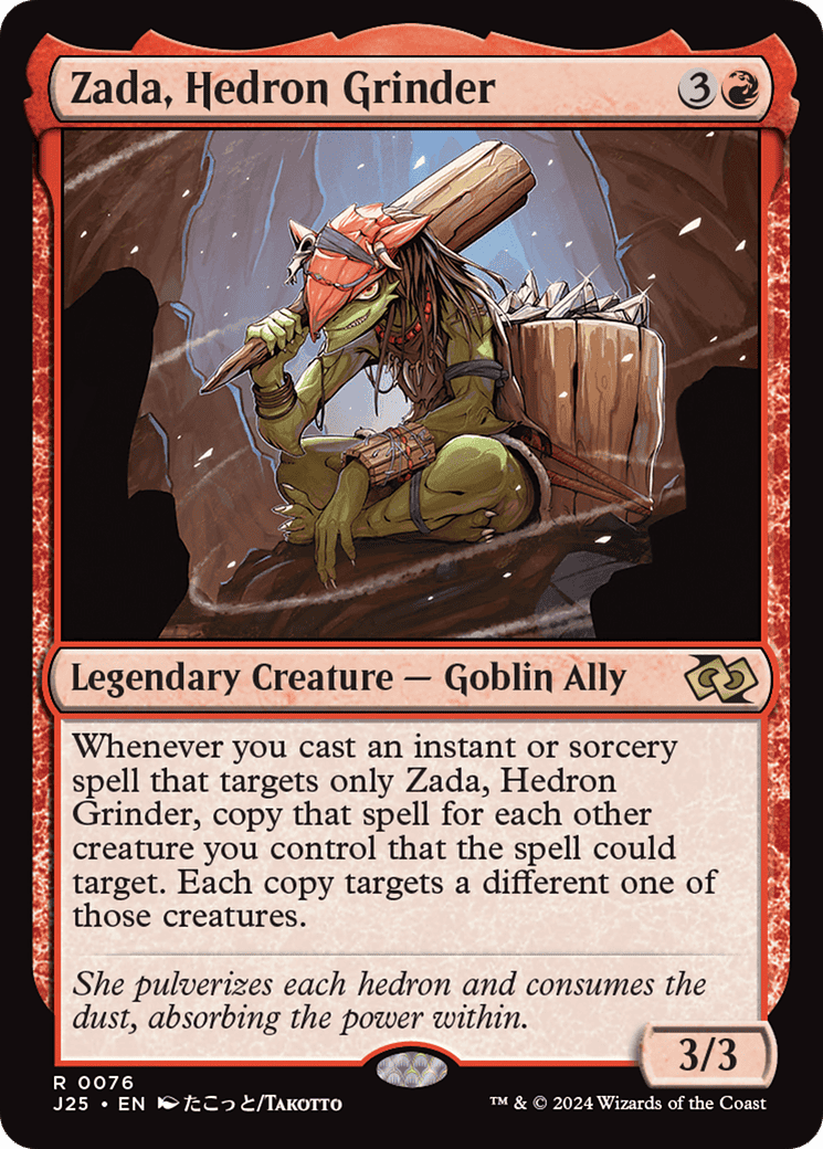 Whenever you cast an instant or sorcery spell that targets only Zada, copy that spell for each other creature you control that the spell could target. Each copy targets a different one of those creatures.