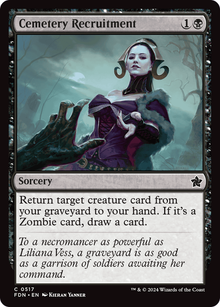 Return target creature card from your graveyard to your hand. If it’s a Zombie card, draw a card.