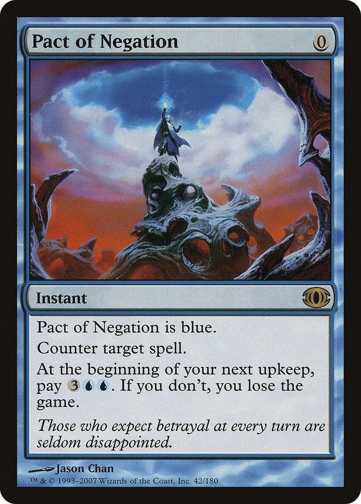 Counter target spell. At the beginning of your next upkeep, pay {3}{U}{U}. If you don’t, you lose the game.