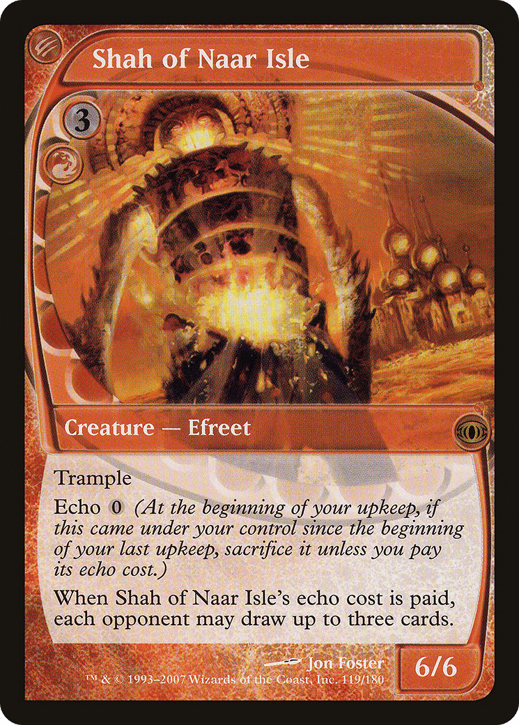 When this creature’s echo cost is paid, each opponent may draw up to three cards.