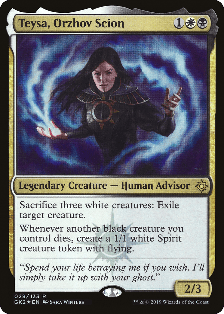 Whenever another black creature you control dies, create a 1/1 white Spirit creature token with flying.