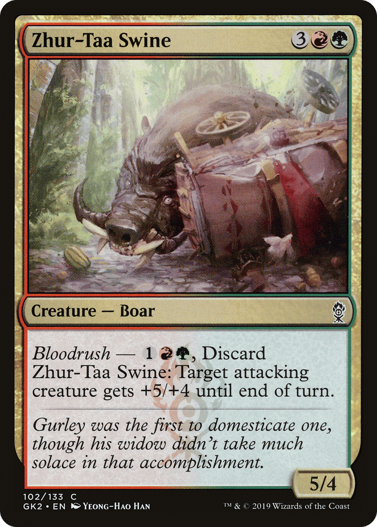 Bloodrush – {1}{R}{G}, Discard this card: Target attacking creature gets +5/+4 until end of turn.