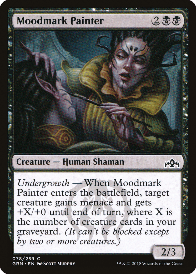 Undergrowth – When this creature enters, target creature gains menace and gets +X/+0 until end of turn, where X is the number of creature cards in your graveyard. (It can’t be blocked except by two or more creatures.)